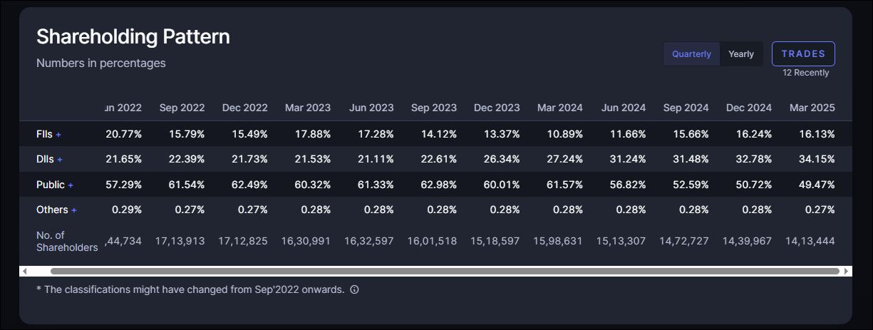 percentage of FII 16.13%